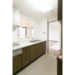引越前のお住まいで使われていたIHクッキングヒーターとレンジフードを移設して再利用。 また、開口部を広げるために吊り戸棚を撤去しました。