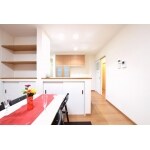 対面カウンターに、造作収納、飾り棚を設置し、収納量UP