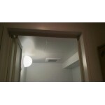 梁の反対側に明るい照明をつけました。浴室の白さに反射して全体も明るくなりました。
