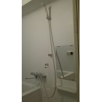 色を白で統一して、照明を明るくしたので浴室全体のイメージも明るくなり広く感じれるようにしました。 カラリ床は空気の通りにくいマンションでは大変重宝します。乾きやすいということはカビにくいので、お掃除の手間も軽減されます。