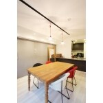 キッチンカウンター下には、半磨き仕上げのダークブラウンのタイルを施工しました。フローリングや家具など、木目調の割合が多くなりがちですが、その中にタイルなどの異素材が入ることによってお部屋の雰囲気に変化を与えてくれます。