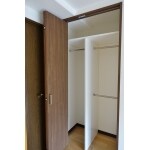 ドア横に収納を新設しましたが、部屋のコーナーを 使っておりますので、狭くなった感じはありません。 ダクトの入っている梁形のカバーは、小さくしました。端部をカーブとして、カットした感じを和らげております。