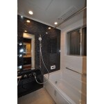 壁面に小物収納用の特注の棚を埋め込みました。 床・壁・浴槽はもちろん断熱化されております。