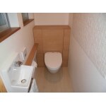 シコロの家でトイレの奥行が1800ミリと広い為、背面収納付きのお掃除のし易いタックレストイレをご提案しました。シロアリと雨漏りもあったので処置し湿気対策用にエコカラットを入れ、寒暖対策にペガラスサッシを施工させて頂きました。 バリアフリーでお掃除も楽に!また湿気対策も対応できて、お母様に喜んで頂けました。