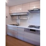 ステンレス構造を気に入っていただき、クリナップのクリンレディでプランを作りました。吊戸棚下の収納はいろいろお迷いでしたが、高さなどの条件から、今回は『アイエリアボックス』を設置することになりました。手の届く範囲に必要な時だけ引き降ろして使え、手動操作も楽で使いやすいアイテムです。ライトウッド×ホワイト×シルバーのコーディネートはナチュラルテイストですが、全体にラインが通ったレイアウトですっきりとモダンなイメージのキッチンになりました。