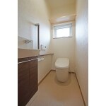 トイレはタンクレスタイプを選択。 手洗器も設置しました。 ご両親様のため、手摺は配置にこだわって設置しました。