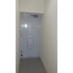 赤茶色の玄関床で暗い印象の玄関でした。 床はフロアシート貼替えで落ち着いた印象に。玄関ドア・ポストは塗装させて頂きました。その他、シリンダー交換、インターホン取付などをさせていただきました。