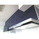 まるで別のお宅のようなキッチンになりました。吊り戸棚の下のアイエリアボックスは、調味料などを入れ、必要な時にボタンを押せば下がってくる仕様です。これならホコリも気になりません。