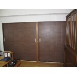 洋風のリビングでしたけど、戸襖が和風でアンバランスでした。 したがって戸襖を洋風に提案しました。 リビングが一体感しました。
