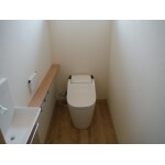 パナソニックの全自動おそうじトイレ「新型アラウーノ」を採用頂きました。 洗浄水量が4.8Lと節水でとても経済的! そのうえ全自動のおそうじトイレは、“泡のパワー”でしっかり洗ってくれます。 手洗いは、水アカをはじく有機ガラス系新素材のアラウーノ手洗い。 排水口まで一体成型で、おそうじラクラクです。
