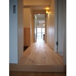 玄関を入ってすぐにある廊下です。床は無垢のパイン材を使用しているため、マンション特有の冷たさが軽減されます。また床をあげることで防音性を高めています。収納もあり外から帰ってきてすぐに服をかけることが可能で、動線に工夫をしました。