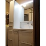 シャワー水洗が壊れてしまったので、洗面化粧台を棚ごと交換したい。