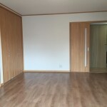 1Fの和室部分はお父さんお母さんの生活スペースとのことでしたので、8畳間の和室と縁側を繋げ洋室にしました。 部屋に入って右手にクロゼット1畳分を2つ分と0.7畳を1つ設け充分な収納スペースを確保しました。