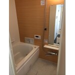 キッチンは白を基調と明るく昇降式吊戸棚ダウンウオール、シンク下収納も、浴室の壁に鏡面加工のアクセントパネル、トイレもウォシュレット一体型、洗面所とお揃いの防水CFを張り仕上げました。