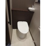 こちらもお風呂と同じく、入口の段差がひどく、とても危険でした。 廊下側70mm、トイレ側60mmあり、つまづきやすいトイレ入口です。 手摺を付け、段差解消もフラットにし、つまづかないよう改修させていただきました。