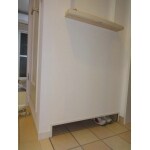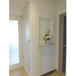 玄関も内装を白で統一して新しくし、玄関収納も交換。 隣接するトイレの床下スペースを利用して、靴を仕舞えるようにしました。 壁の一部には、飾り棚も設けました。