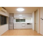 機能的ですっきりとしたデザインの可愛らしいキッチンへ