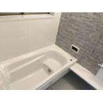 1618サイズの新型の浴室を入れました。 色や質感に強弱のある石目柄のパネルをアクセントとしました。
