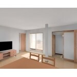 細かく仕切られた間仕切りを取り除いてキッチン・ダイニングと合わせて16帖の広さになりました。 南側に掃出しを設け、掃出しの外にはバルコニーを付けてそこから外部に出れます。風通しがよくて開放感のあふれるリビングになりました。