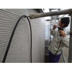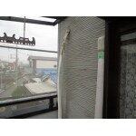 サイディングの継手や窓回りの古いシーリングを取り除いて、新しいシーリングに打ちかえました。 外壁面には、エアコン化粧ダクト配管や室外機の架台が取り付けられていたので、それらを外してから塗装を行いました。外壁に取り付けられている部品がそのままだと、その部分が塗膜欠損になり、水分が回り込んで悪さしたりする可能性が残ります。