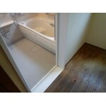 ユニットバスは段差なく設置し、浴槽周りに手摺も設置しました。既存の設置状況では、入口横に手摺を取付けますと風呂フタ用のフックの利用が出来ないこともご了承いただき、3カ所に手すりを設置しました。 また洗面所の床は無垢材を使っていて今回は手を入れないので、見切り枠を用いて対応しました。きれいに納まり喜んでいただけました。