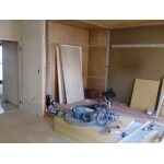 押入れは撤去しました. 新規に下地からはり、クロス。 扉つけ、上部の棚板でクローゼットにしました。