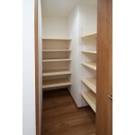 対面式キッチンはリビング側から手元が見えるのが気になるところですが、カウンターの高さを15㎝上げたことで問題を解消いたしました。 食品庫内には内部照明を設置したので、片付け、取り出しをスムーズに行えます。