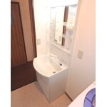 壁側に洗面化粧台を設置してスペースを有効に使えるようにご提案しました。