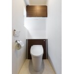 タンクレスに見えて、実はキャビネットの中にタンクが隠れている、なおかつキャビネットで収納力もあるトイレをご提案し、採用頂きました。