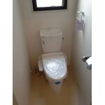 シンプルな、最低限のシャワートイレ機能を備えた節水型トイレです。お掃除しやすい、フチがないタンク式トイレをご提案、採用していただきました。