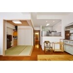 T様のご希望に添うよう、5枚の戸襖がすべて納まるスペースを造作。襖を敷居の上を移動させるだけなので、力のない女性でも楽々な仕様。天井、畳の縁や戸襖の枠は明るい色調のものを選択し、リビングに馴染む和室に。
