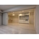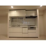 キッチンは両サイドにそで壁を設けることで、圧迫感なくリビングと空間を隔したまとまりのある空間に。最新のデザインに鏡面の扉を選び、スタイリッシュで若々しい印象のダイニングキッチンになった。