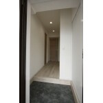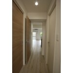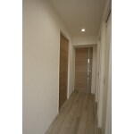 玄関から続く廊下が暗く狭かったため廊下幅を少し広げリビングへの目線を遮りつつ明るくなるように全面改装しました。