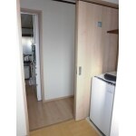 籐風のフロアタイルを貼り、爽やかな空間に仕上がりました。建具は開閉しづらくなっていたため、廊下に合わせメープル柄の引き戸に交換しました。