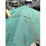 屋根の状態は既存コロニアル材にての施工で、本体の反り及び割れ、色の劣化と状態は良くありませんでしたので、今回軽量瓦ガルバ材による瓦を選択させて頂きました。この瓦は、既存コロニアル材からの上貼り施工が出来る為施工にてのコスト削減又、断熱材が付いておりますので省エネにも繋がる商品をご提案させて頂きました。