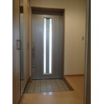 玄関を設置しました。駐車場スペースがあるので玄関は、開き扉ではなく引き戸としました。