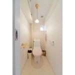 機能的にお手入れや使い勝手などを追及した明るいトイレ