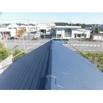 ガルバリウム鋼板のカバー工法。 お客様の屋根に使われている建材は、強度を保つ為に薄いスレートを何層にも重ね高温で圧縮するという手法で作ったスレート材が使われていますが、経年で層と層が剥離してしまう「層間剥離」という現象を引き起こしています。 高額な下地木材まで替える「葺き替え」よりも、ガルバリウム鋼板のカバー工法をお勧めいたしました。