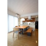 リビングダイニングスペースの一角に、構造上の大きな柱がありました。そこに、あえてタイルを施工する事により、柱の存在感を生かしつつ、空間のアクセントにすることが出来ました。また、柱の前には、バイオエタノール暖炉を設置しています。煤や煙、有害物質を出さない仕組みなので、マンションにはおすすめのアイテムです。
