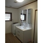 洗面台が大きすぎるのでもう少し小さくしたい。スッキリしたデザインがいいなぁ!クロスも貼替えて明るくしたいなぁ・・・。