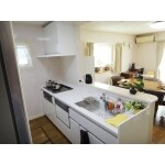 キッチン前のカウンターも作り直し新しいキッチンのサイズに合わせました。 奥様のご希望でカウンター上の天井にもキッチンパネルを設置しダウンライトの照明に変更しました。 また、キッチン側からの壁を取り払いリビングと一体感が増し部屋全体が広く感じられるようになりました。