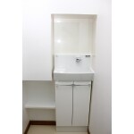 とにかくタンクレス!とのご要望でした。別置きの手洗いは場所を取ってしまうので、元々あった収納棚を加工して手洗い器を設置。床もフローリングからクッションフロアに変更したのでお掃除もラクラクです。 清潔感のある水色のアクセントカラーが素敵ですね!