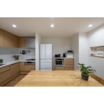 スケルトンリフォームを行いました。これからお孫様の世代まで長く使って頂きたく、30年先の快適・安心までを見据えた耐震・断熱工事を実施。耐震工事は、筋交いや金物と合わせて「制震ダンパー」も採用。地震のエネルギーを吸収し、揺れを抑えるだけでなく余震のような継続的な揺れへの耐久度を上げ、倒壊への危険性を抑制します。工事前と後の診断数値は0.16から1.09(大規模な地震に対して倒壊や崩壊の危険性が低い)まで向上しました。断熱工事は、断熱材と気密シートを別張りにし気密性を向上。窓には二重サッシや、排気口もレンジフード連動型に変えて外気の影響を受けにくくしました。