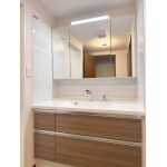 1センチ刻みで開口調整ができるリジャストで、今あるスペースを無駄なく使い、ぴったり収まる理想の洗面化粧台に^^ ミラーの部分にも収納が増え洗面まわりに置いてしまいがちな小物類もしまえてカウンターまわりもスッキリ。 広々と使える洗面スペースになりました!