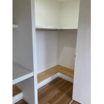 布団など大物も収納できるように棚収納とパイプスペースを作りました。