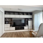 築30年ほどのマンションにお住まいです。 浴室とキッチン以外の水回りも含めて、リフォームをご希望されていました。 リビングの続き和室を広げてLDとして広くします。和室にあった押し入れはクローゼット収納として使いやすくしました。 壁面には、TVを置けるシステム家具をぴったりと収まるように計画しました。