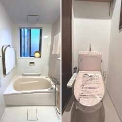 お風呂・トイレの不具合にお悩み頂いておりました。 寒暖差・冷え込んでしまうことへの解決や、お母さまとのご生活にて安心してお使いいただけますように、ユニットバスへ変更することをご提案させていただきました。 トイレは、漏水にお悩み頂いておりました為、トイレ空間の修繕工事をさせていただきました。