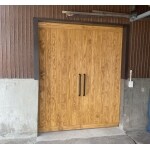 今回、古民家の納屋ということで地面と壁ともに土でできており足元も悪く壁も土が剥がれ落ちている状況でしたので地面はコンクリート、壁は耐震性も高めることができる耐力壁で仕上げました。照明も設置し夜でも安全になり杉の無垢板の扉で古民家のイメージも残したリフォームになりました。
