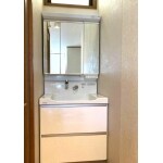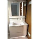 従来あった上部収納棚をなくして、TOTOのオクターブをご提案しました。両開きできる3面鏡裏収納と2段引き出し収納で大幅に収納量がアップしました。引き出しのため、出し入れが簡単で一目で中身が見渡せることで使いやすくなりました。水栓が上部に設置されているため、水が溜まりにくい形状で軽く触れるだけで操作できる、タッチスイッチ仕様です。見た目も上品でお手入れも簡単で毎日の掃除がラクになりました。
