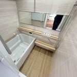 木目調の床材を使用し、温かみのある浴室となりました。